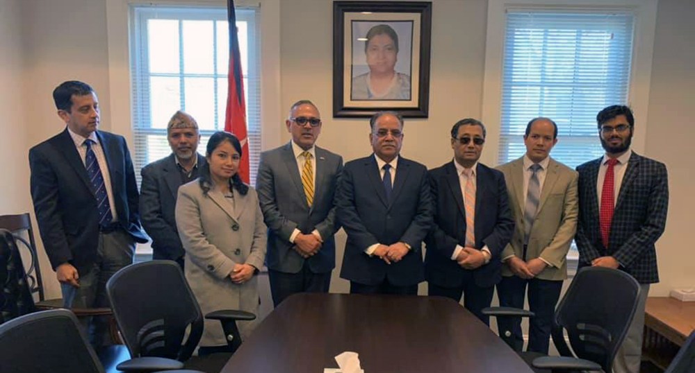 काठमाडौं चैत ६, पत्नी सीता दाहालको उपचारका लागि अमेरिका पुगेका पूर्वप्रधानमन्त्री एवम् नेकपा अध्यक्ष पुष्पकमल दाहाल (प्रचण्ड) नेपाली राजदूतावास पुगेका छन्। वासिंगटन डिसीस्थित नेपाली दूतावासमा प्रचण्डलाई अमेरिकाका लागि नेपालका राजदूत डा अर्जुन कुमार कार्की तथा कार्यालयका कर्मचारीले स्वागत गरेका थिए। सो क्रममा राजदूत कार्की पछिल्लो अमेरिक...