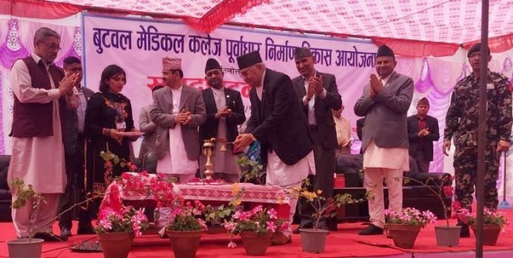 बुटवल चैत ८, आज प्रधानमन्त्री ओलीले बुटवल मेडिकल कलेजको उद्घाटन गर्दै अब जनता खुशी र सुखी बन्न पाउनुपर्ने बताउनु भएको छ ।” सरकारको एक प्रदेश एक मेडिकल कलेजको अवधारणानुरुप सो कलेज बन्न लागेको हो । सो अवसरमा प्रधानमन्त्री ओलीले भौतिक पूर्वाधार विकास निर्माणमा सरकार गम्भीर ढङ्गले लागेको बताउनुभयो । उहाँले भन्नुभयो, “जनता सधैँ पीडामा बस्ने हो...
