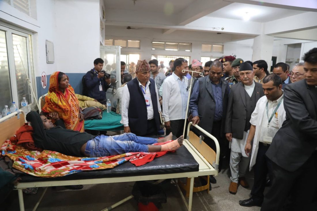 काठमाडौं चैत १८, प्रधानमन्त्रीले प्रधानमन्त्री केपी शर्मा ओली बारा जिल्लाको कलैयास्थित अस्पतालमा पुग्नु भएको छ । आइतबार साँझ अचानक आएको भिषण हावाहुरीका कारण घाइतेको अवस्थाबारे उहाँले जानकारी लिनुभएको छ । प्रधानमन्त्रीलाई प्रमुख जिल्ला अधिकारी राजेश पौडेलले घटनाको जानकारी दिनुभएको थियो । गएराति साँझ पौने ८ बजेदेखि सवा ८ बजेसम्म गएक...