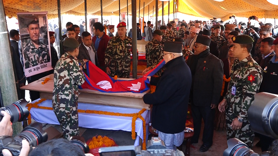 काठमाडौं । स्वर्गीय पर्यटनमन्त्री रवीन्द्र अधिकारीसहित ७ जनालाई काठमाडौंको टुँडिखेलमा श्रद्धाञ्जली दिइएको छ । श्रद्धाञ्जलीसभामा उपस्थित सबैले उहाँहरुको आत्माको चिरशान्तीको कामनाका साथै शोक सन्तप्त परिवाजनप्रति धैर्यधारणको शक्ति मिलोस् भन्दै प्रार्थना गरे । मृतकका आफन्तहरु निकै भावविह्वल देखिन्थे । उहाँहरुलाई सम्झाउन निकै हम्मेहम्मे थिय...