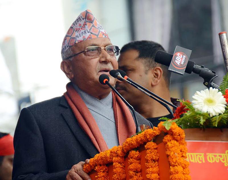काठमाडौं, असोज ३ – एमाले अध्यक्ष केपी शर्मा ओलीले प्रादेशिक र संघीय संसदको चुनाव नगराउने षडयन्त्रमा सरकार लागेको वताउनु भएको छ । मंगलवार राजधानीमा आयोजित कार्यक्रमलाई सम्बोधन गर्दै ओलीले सोमबार प्रमुख दलका नेताहरुको बैठकमा सत्तारुढ दलहरुले पहिले नै सहमति भइसकेको मतपत्र सम्बन्धी बखेडा झिकेर चुनाव टार्ने प्रपञ्च गरेको वताउनुभयो । ‘हामीले तानेर ...