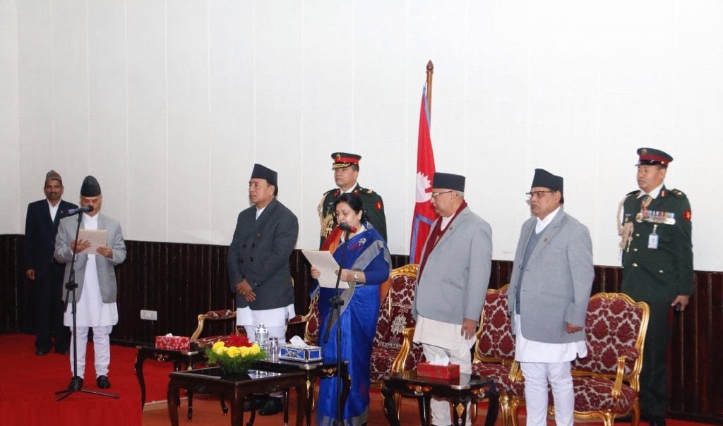 काठमाडौं पुस १८, राष्ट्रपति विद्यादेवी भण्डारीले नवनियुक्त प्रधानन्यायाधीश चोलेन्द्रशम्शेर राणालाई पद तथा गोपनीयताको शपथ ग्रहण गराउनुभएको छ । शीतलनिवासस्थित राष्ट्रपति कार्यालयमा आज आयोजना गरिएको विशेष समारोहका बीच राष्ट्रपति भण्डारीले नवनियुक्त प्रधानन्यायाधीश राणालाई पद तथा गोपनीयताको शपथ गराउनुभएको हो ।समारोहमा उपराष्ट्रपति नन्दबहादुर पु...