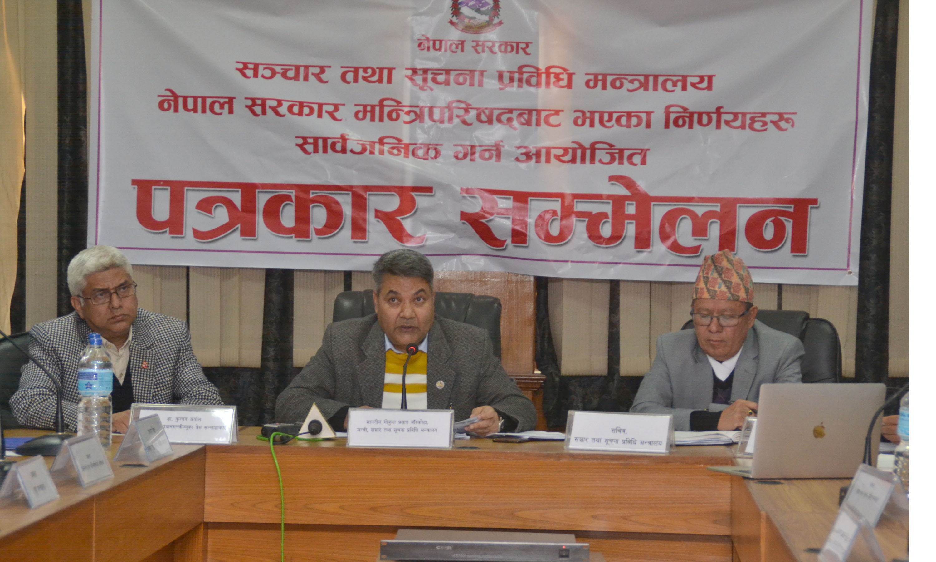 मन्त्रिपरिषद् बैठकले गरेका प्रमुख निर्णयहरू काठमाडौँ,पुस १९ — सरकारले ३० वटा जिल्लामा राष्ट्रपति महिला उत्थान जीविकोपार्जन सुधार कार्यक्रम सञ्चालन गर्ने भएको छ । सरकारका प्रवक्ता एवं सञ्चार तथा सूचना प्रविधि मन्त्री गोकुलप्रसाद बाँस्कोटाले गरिब, विपन्न र असहाय महिलाहरुलाई लक्षित गरी चालु आर्थिक वर्षदेखि नै जीविकोपार्जन सुधार कार्यक्रम लागू गर...