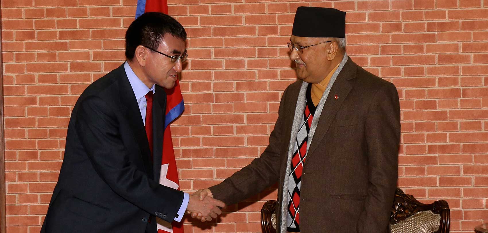 काठमाडौं पुस २६, प्रधानमन्त्री केपी शर्मा ओली र जापानी विदेशमन्त्री तारो भएको छ । दुई दिने औपचारिक भ्रमणमा रहेका कोनोले प्रधानमन्त्री ओलीलाई बिहीबार भेटेका हुन् । प्रधानमन्त्री ओलीको सचिवालयले प्रधानमन्त्री ओली र जापानी विदेशमन्त्री कोनोबीच बिहीबार बिहान भेटवार्ता भएको जनाएको छ । सचिवालयका अनुसार, दुईबीच द्विपक्षीय हित लगायत विषयमा कुराका...
