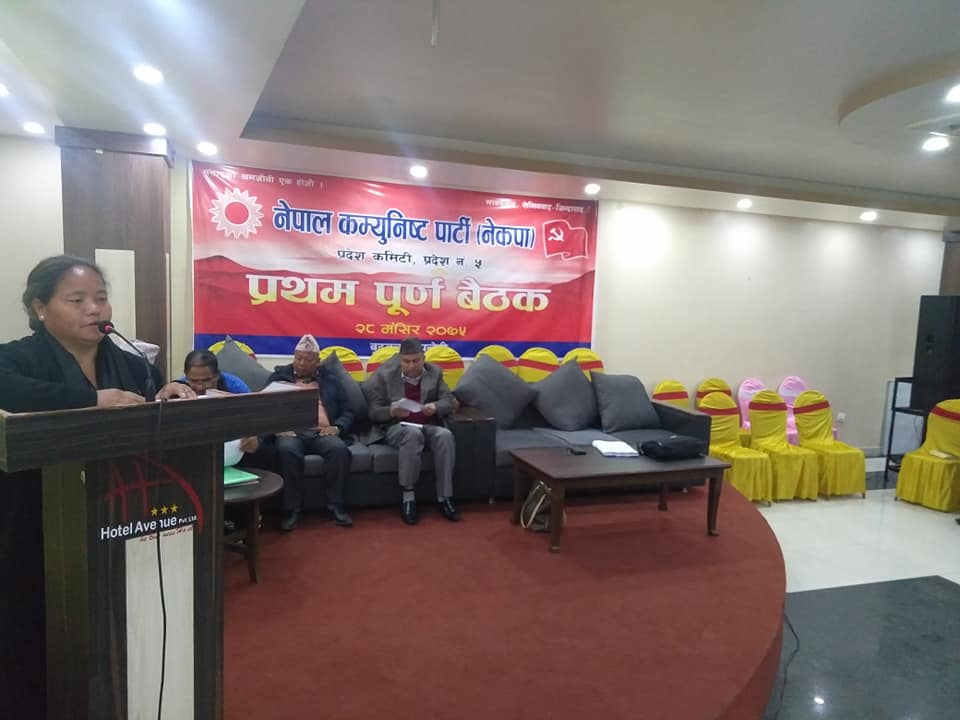 बुटवल, पौष ९ । नेपाल कम्युनिष्ट पार्टी (नेकपा) बुटवल उप–महानगर कमिटीको प्रथम बैठक सम्पन्न भएको छ । बुटवलको सुखानगरमा रहेको पुष्पलाल स्मृति भवनमा भएको बैठकमा प्रमुख अतिथि समेत रहनुभएका केन्द्रीय सदस्य लिला गिरीले नगर कमिटीका पदाधिकारी तथा सदस्यहरुलाई सपथग्रहण गराउनुभएको थियो । बैठकले नगर अन्तर्गत रहेका शाखा कमिटीहरु निर्माणका लागि सम्बन्...