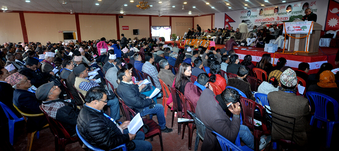 पदाधिकारी संख्यामा मतभेद काठमाडौं, मंसिर २९ आजदेखि सुरु हुने महासमिति बैठकमा भाग लिन नेपाली कांग्रेसका देशभरका महासमिति सदस्य तथा जिल्ला सभापतिहरु काठमाडौंमा भेला भएका छन्। शनिबार बिहान ११ बजे रामशाहपथस्थित सिंहदरबारअगाडि यगम्बर पार्टी प्यालेसमा सभापति शेरबहादुर देउवाले महासमिति बैठक उद्घाटन गर्ने कार्यक्रम छ। कांग्रेस प्रवक्ता...