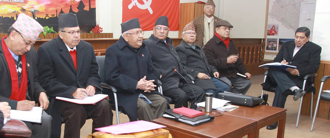 काठमाडौं,पुस १३ नेपाल कम्युनिष्ट पार्टी (नेकपा)को स्थायी कमिटी बैठकले दुई पार्टीबीचको साङ्गठनिक एकता र अन्य राजनीतिक विषयहरु सल्ट्याउनका लागि कार्यदल गठन गर्ने निर्णय गरेको छ । दुई साता लामो बैठकको अन्तिम दिन आज(शुक्रवार) स्थायी कमिटी बैठकले रामबहादुर थापाको नेतृत्वमा महासचिव विष्णु पौडेल, शंकर पोखरेल, वर्षमान पुन, योगेश भट्टराई, लेखराज भ...