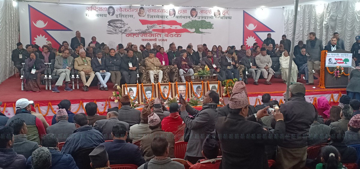 काठमाडौँ पुस १, नेपाली काङ्ग्रेस महासमिति बैठकको बन्द सत्र बिहानदेखि शुरु भएको छ । बन्द सत्रमा महामन्त्री डा शशाङ्क कोइरालाले ‘साङ्गठनिक प्रतिवेदन’, कोषाध्यक्ष सीतादेवी यादवले पार्टीको ‘लेखा प्रतिवेदन’ र सहमहामन्त्री डा प्रकाशशरण महतले पार्टीको ‘आर्थिक प्रस्ताव’ पेश गर्नुभएको छ । तीन वटै प्रस्तावमाथि आज छलफल हुनेछ । प्रतिवेदनमा छलफलपछि मह...