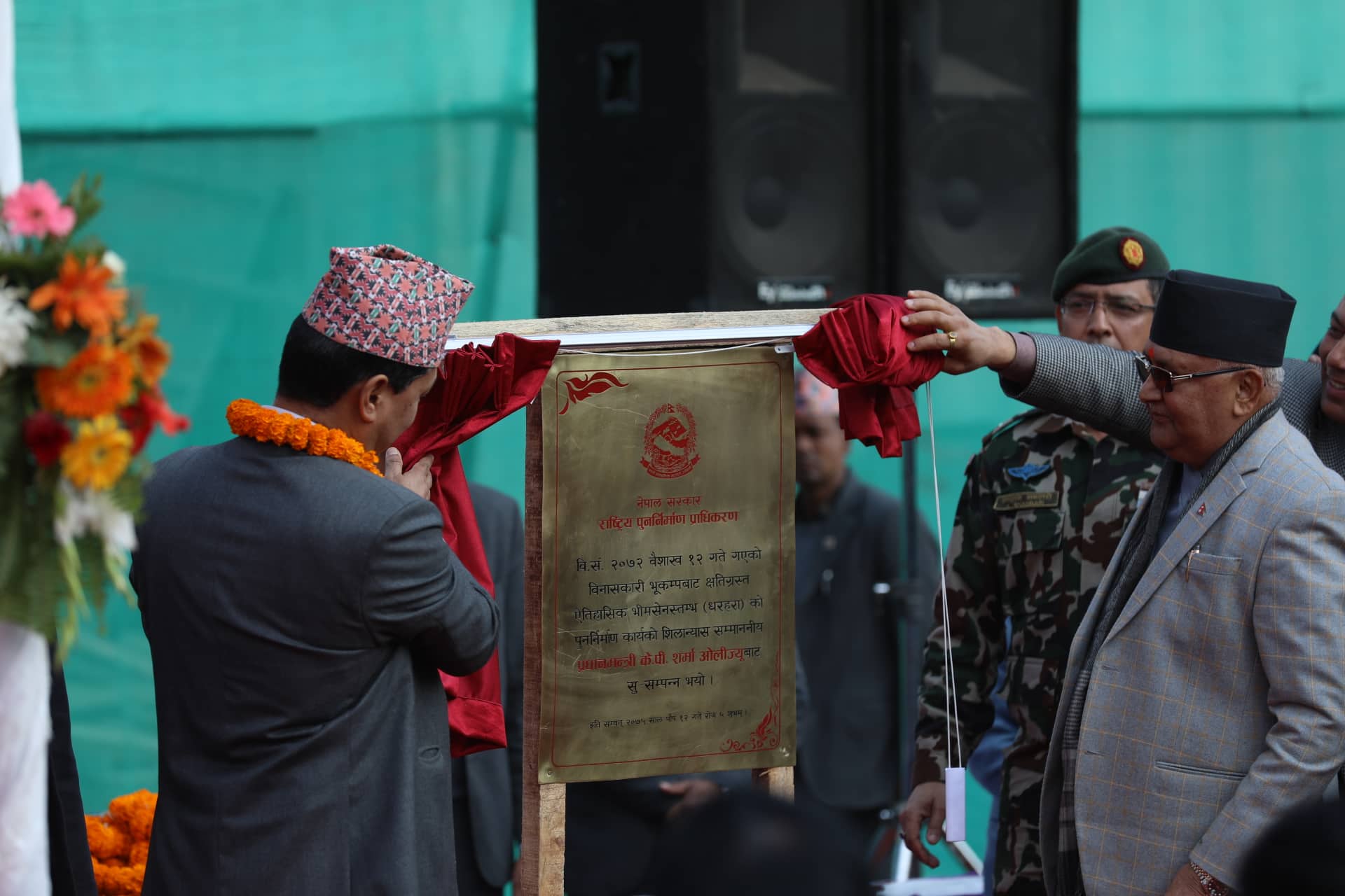 काठमाडौँ, पुस १२ गते । भूकम्पले भत्काएको धरहरा पुनर्निर्माणको औपचारिक सुरुवात भएको छ । भूकम्प गएको झण्डै चार वर्ष पुग्न लाग्दा धरहरा पुनर्निर्माणको औपचारिक थालनी भएको हो । प्रधानमन्त्री केपी शर्मा ओलीले २०७२ साल वैशाख १२ गतेको भूकम्पका कारण ध्वस्त भएको धरहराको शिलन्यास बिहीबार विशेष पूजासहित प्रधानमन्त्री ओलीले शिलन्यास गर्नुभयो । भूकम्प ...