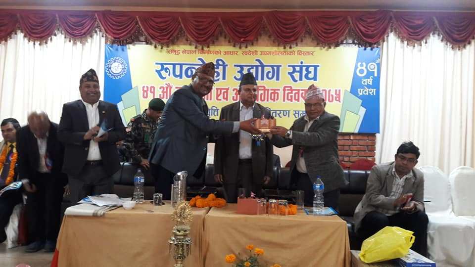 बुटवल, मंसिर १५ रुपन्देही उद्योग संघले आफ्नो त्रिदिवशीय कार्यक्रम अन्तरगत ४१ औं स्थापना एंव औद्योगिक दिवशको अन्तिम दिन आज शनिवार विशेष कार्यक्रमको आयोजना गरि मनाएको छ । सो अवसरमा बोल्दै कार्यक्रमका प्रमुख अतिथि प्रदेश नं. ५ का मुख्यमन्त्री शंकर पोखरेलले ट्रेडको विजनेशलाई कम गर्दै उत्पादनमुलक उद्योगको विकास र व्यवसायको जर्गेना गर्न नसक्दा...