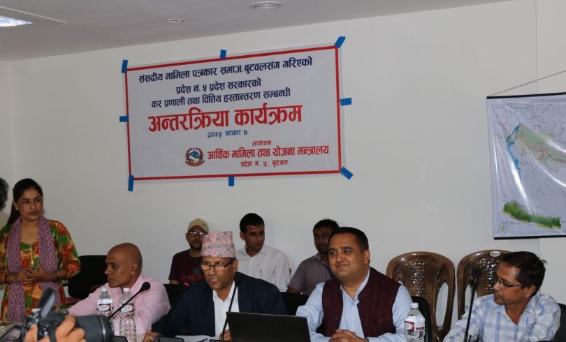 बुटवल,भदौ १५ प्रदेश आर्थिक मामिला योजना मन्त्रालयले बजेट र राजस्व सम्बन्धी व्यवस्थाका सम्बन्धमा स्थानीय तहहरुसंगका अन्तरक्रिया कार्यक्रम शुरु गरेको छ । शुक्रवार रुपन्देही र नवलपरासी पश्चिमका स्थानीय तहसंग अन्तरक्रिया सम्पन्न भयो । स्थानीय तहको प्रस्तुति सुनेपछि मुख्यमन्त्री शंकर पोखरेलले भन्नुभयो—कर नतिर्न परेहुन्थ्यो भन्ने मनोविज्ञानलाई तोड्...