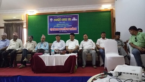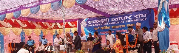 रुपन्देही व्यापार संघको १७ औं साधारणसभा सम्पन्न बुटवल असोज, ८–मुलुकको आर्थिक विकासका लागि आत्मनिर्भरतामा आधारित अर्थतन्त्रको विकास गर्न गाउदेखि शहरसम्मको व्यापार विस्तार गर्नु जरुरी रहेको बताइएको छ । मुलुकको आर्थिक विकास वास्तविकता र व्यवहारिकतामा आधारित योजना र त्यसको प्रभावकारी कार्यान्वयनबाट मात्र हुने हुदा समृद्धीको यात्रा तय गर्न राज्य र न...