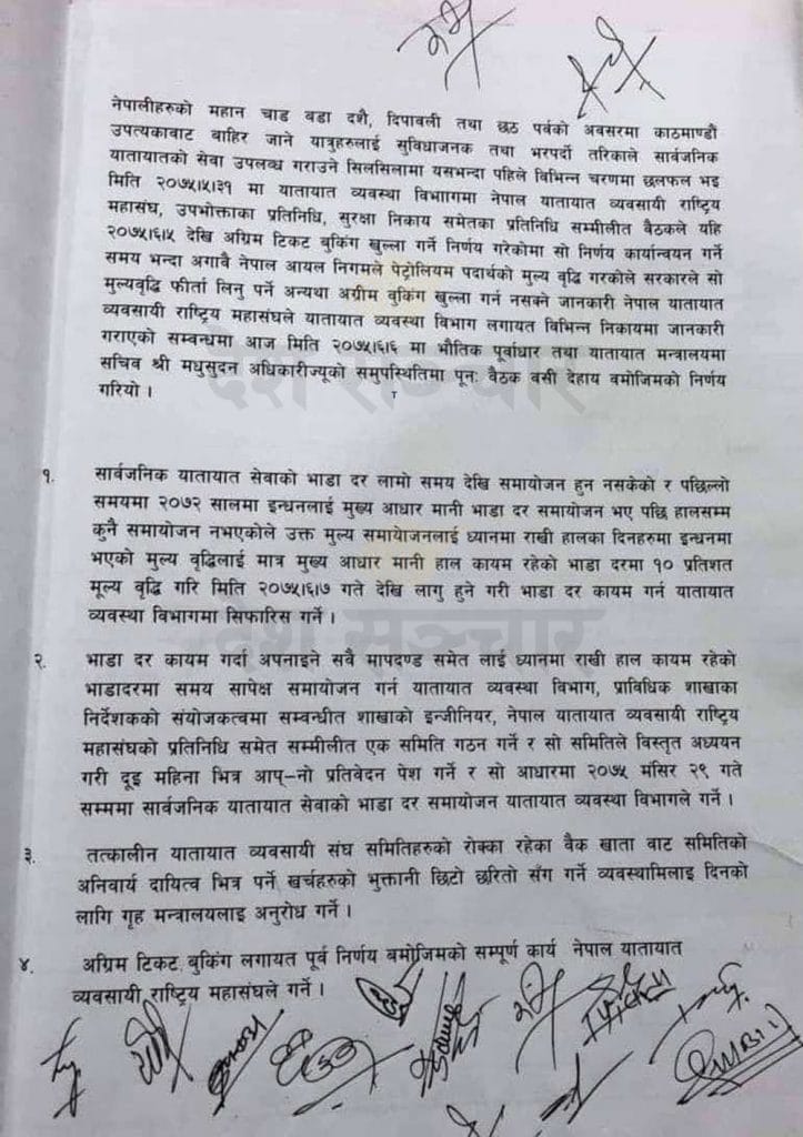 काठमाडौं,अशोज ७ सरकारले आइतबारबाट लागू हुने गरी यातायातको भाडा बढाउने भएको छ। शनिबार भौतिक पूर्वाधार तथा यातायात मन्त्रालयमा भएको सरकार र राष्ट्रिय यातायात व्यवसायी महासंघका प्रतिनिधिको छलफलले आइतबारबाट लागू हुने गरी १० प्रतिशत भाडा बढाउने निर्णय गरेको हो। २०७२ सालदेखि भाडा नबढेको भन्दै इन्धनमा भएको मूल्यवृद्धिलाई मूख्य आधार मानी हाल कायम...