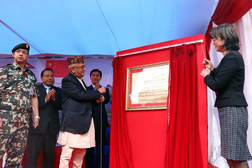 काठमाडौं चैत २७, देशको मुख्य प्रशासनिक संरचना रहेको सिंहदरबारमा मंगलबारदेखि सोलार बिजुलीको प्रयोग गरिएको छ ।चीन सरकार सहयोगमा बनेको १ मेगावाटको सोलार प्रणालीको प्रधानमन्त्री केपी शर्मा ओली र चिनियाँ राजदूत यू होङले उद्घाटन गर्नुभयो । सिंहदरबारमा आयोजित कार्यक्रममा उक्त सोलार प्रणाली चीनले नेपाल सरकारलाइ हस्तान्तरण गरेको थियो । सोलारबाट बिज...