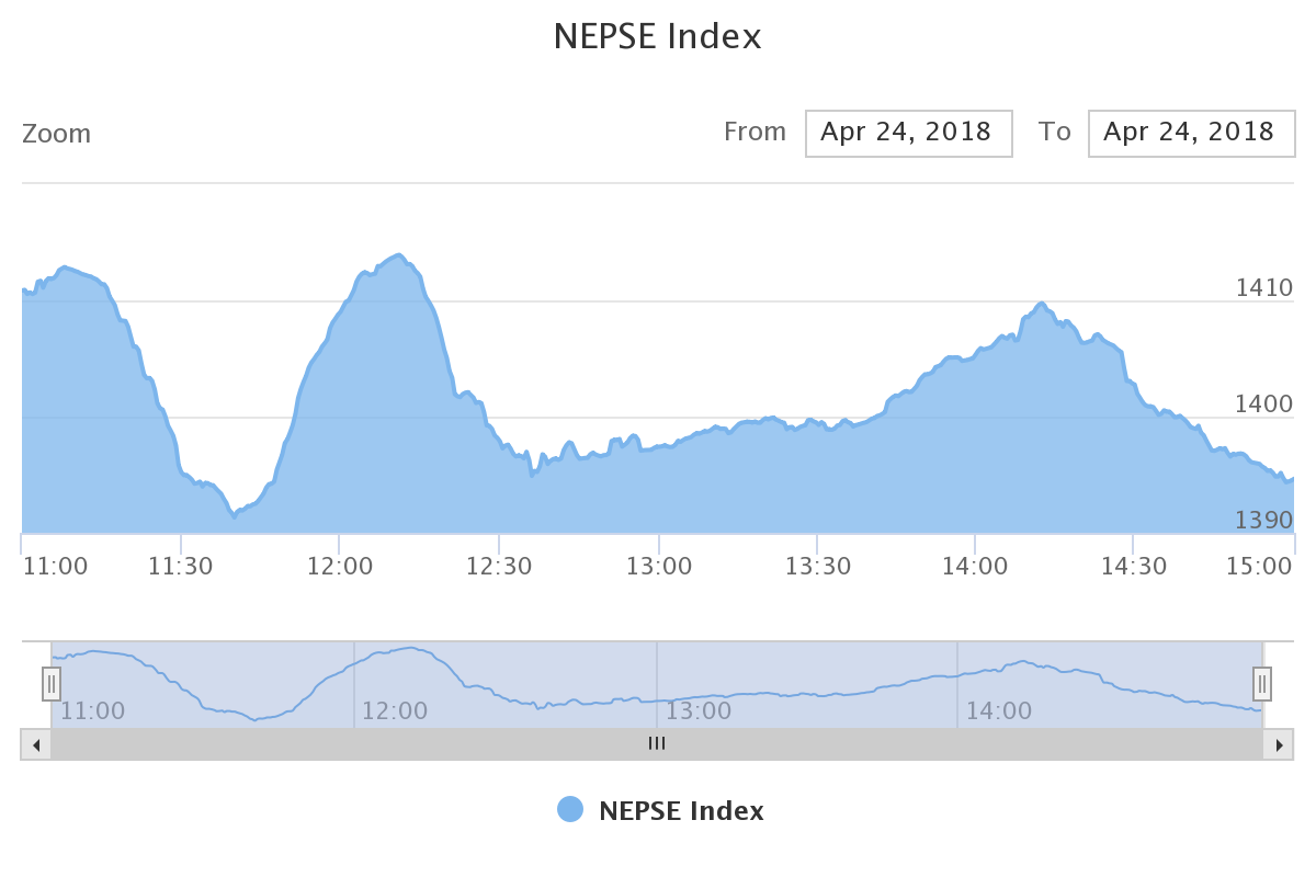 काठमाडौं । सोमबार शेयर बजारमा खुलेदेखि नै आएका गिरावटका कारण हलचल मच्चिएको छ । मुलुकको आर्थिक गतिविधि तलमाथि भएर नभई अर्थमन्त्री डा. युवराज खतिवडाले बोलेकै कारण सोमवारको शेयर बजारमा हलचल मच्चिएको हो । शेयर बजारमा हलचल मच्चिएसँगै शेयर लगानीकर्ताहरु भने तनावमा परेका छन् । सोमबार विहानैदेखि घट्न सुरु गरेको शेयर बजार तीन प्रतिशतभन्दा बढिले घट्द...