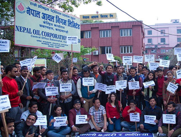काठमाडौँ जेठ ४, नेपाल विद्यार्थी संघले पेट्रोलियम पदार्थमा भइरहेको मूल्यवृद्धि तत्काल फिर्ता लिन माग गर्दै नेपाल आयल निगमको केन्द्रीय कार्यालय घेराउ गरेको छ । सरकारले पेट्रोलियम पदार्थमा पटकपटक मूल्यवृद्धि गरेर जनतालाई मारमा पारेको भन्दै नेविसंघले आज एक घण्टा बबरमहलस्थित निगम कार्यालयमा नारावाजी र घेराउ गरेको हो । नेवि संघका नेता दीपक भट...