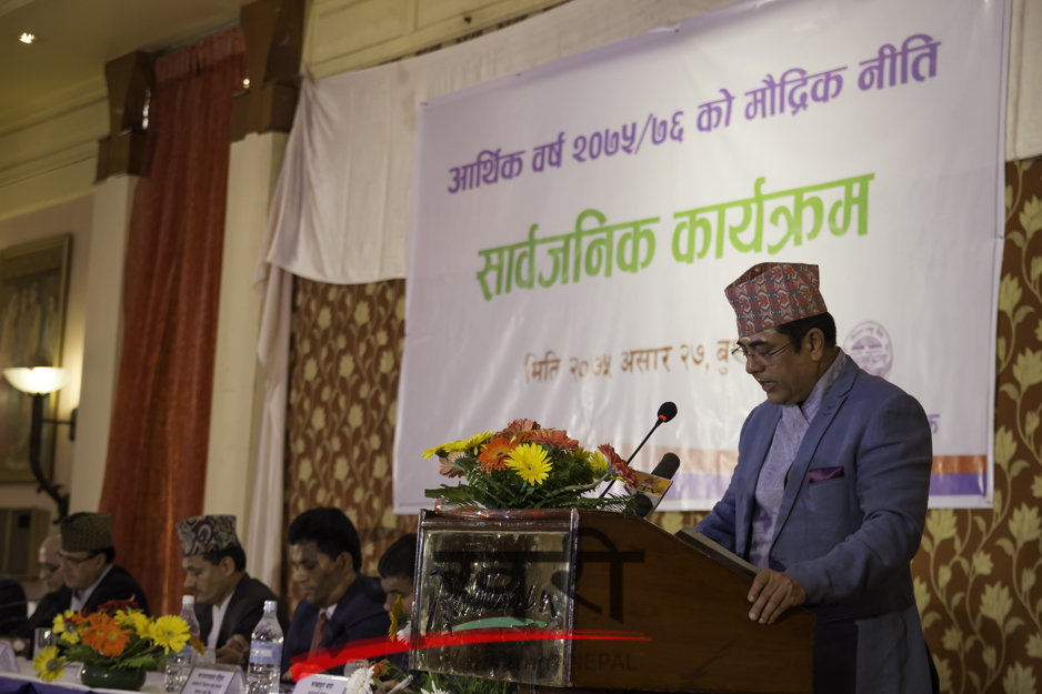 काठमाडौँ,जेष्ठ १५ अर्थमन्त्री डा. युवराज खतिवडाले यस आर्थिक वर्ष २०७४/२०७५ का लागि १३ खर्ब १५ अर्बको बजेट प्रस्तुत गरेका छन्। बजेटको करिब ६० प्रतिशत हिस्सा चालु खर्चमा छुट्टयाइएको छ। कर्मचारीको महंगी भत्ता वृद्धि गरिएको छ भने विदेशबाट सय ग्रामसम्म काँचो सुन ल्याउन पाइने व्यवस्था गरिएको छ। हतारमा बजेट प्रस्तुत गरेका अर्थमन्त्रीले ...