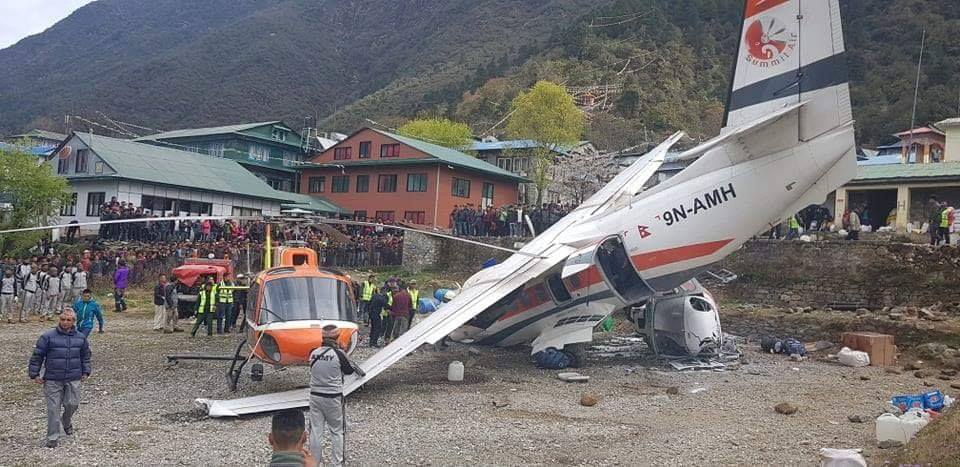 काठमाडौँ,बैशाख १ सोलुखुम्बुको लुक्ला विमानस्थलमा हवाई जहाज र हेलिकोप्टर आपसमा ठोक्किँदा चार जनाको मृत्यु भएको छ। उडान भर्ने क्रममा समिट एअरको विमान र मनाङ एअरको हेलिकप्टर ठोक्किँदा दुर्घटना भएकाे बताइएको छ । घटनामा पाइलट र सुरक्षाकर्मीसहित ४ जनाको मृत्यु भएको पुष्टि भएको छ। जिल्ला प्रहरी कार्यालय साेलुखुम्बुका प्रमुख डीएसपी शालिक...