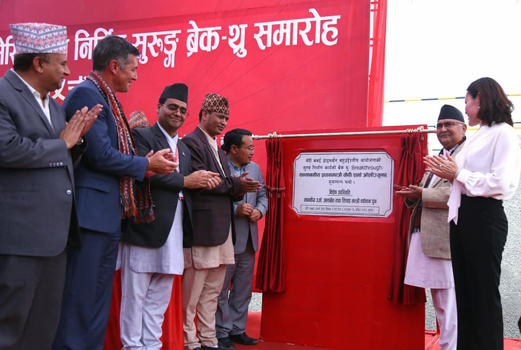 सुर्खेत, वैशाख ३ गते । प्रधानमन्त्री केपी शर्मा ओलीको उपस्थितिमा राष्ट्रिय गौरवको भेरी बबई बहुउद्देश्यीय डाइभर्सन आयोजनाको सुरुङ निर्माणको आज ‘बे्रक थु्र’ भएको छ । टनेल बोरिङ मेशिन (टिबिएम) प्रविधिमा पहिलो पटक नेपालमा सो सुरुङ निर्माण भएको हो । सुरुङ निर्माणको जिम्मा पाएको चिनियाँ कम्पनी चाइना इञ्जिनीयरिङ ओभरसिज प्रालि (कोभेक) ले टि...