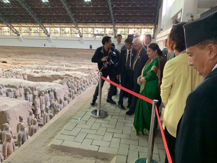 काठमाडौँ वैशाख १२, छिमेकी मित्रराष्ट्र चीनको ९ दिने राजकीय भ्रमणमा रहनुभएकी राष्ट्रपति विद्यादेवी भण्डारीले चीनको टेराकोटा वरिर्यज म्युजियमको अवलोकन गर्नुभएको छ । टेराकोटा आर्मी चीनको सबभन्दा महत्वपूर्ण एक पुरातात्तिवक खोज हो । पश्चिमी चीनको सिआन शहरमा रहेको छिङ वंशका प्रथम सम्राटको समाधिस्थल विश्वका सम्राटहरुका समाधिस्थलहरुमध्ये सबैभन्दा ठ...