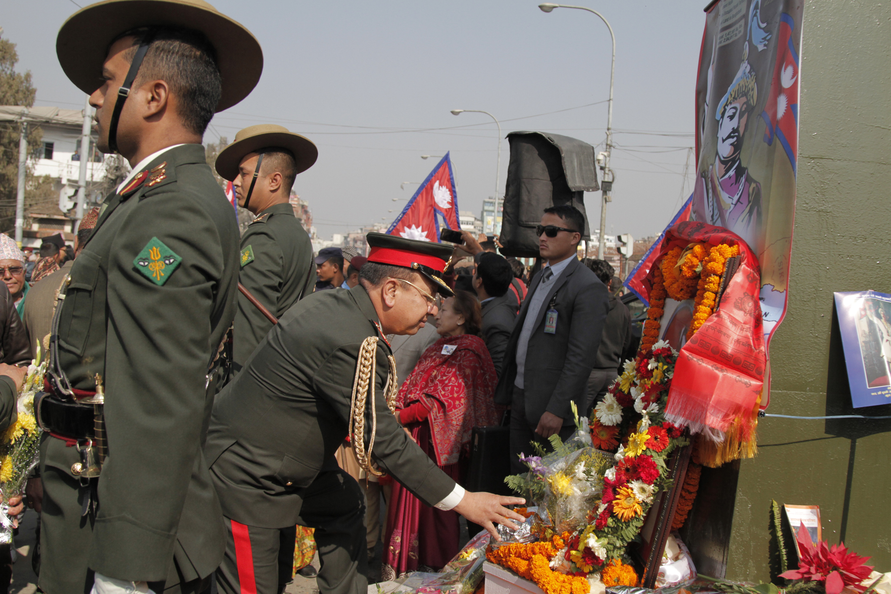 काठमाडौं पुस २७, नेपाल एकीकरणका अभियन्ता पृथ्वीनारायण शाहको योगदान स्मरण गर्दै आज पृथ्वी जयन्ती मनाइँदै छ । गोर्खाली राजा नरभूपाल शाह र रानी कौशल्यावतीका जेठा छोराका रूपमा विसं. १७७९ पुस २७ गते जन्मिएका शाहले बाइसे–चौबीसे राज्यमा छरिएर रहेका राज्यहरुलाई एकत्रित गरेर आधुनिक नेपाल निर्माण गरेका थिए । भौगोलिक रुपमा नेपाल एकीकरण गरेकाले शाहलाई ...