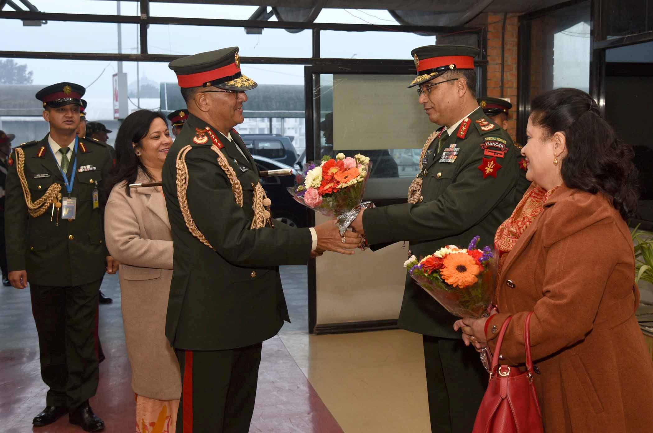काठमाडौँ पुस २७, प्रधानसेनापति पूर्णचन्द्र थापा छ दिने भारत भ्रमणका लागि त्यसतर्फ प्रस्थान गर्नुभएको छ । प्रधानसेनापति पदमा नियुक्ति भएपछि पहिलोपटक उहाँ आफ्ना भारतीय समकक्षी स्थलसेनाध्यक्ष जनरल विपिन रावतको औपचारिक निमन्त्रणामा आज विहान त्यसतर्फ प्रस्थान गर्नुभएको हो । प्रधानसेनापति थापाको भ्रमणदलमा श्रीमती दीपा थापा, सैनिक इण्टिलिजेन्स महा...