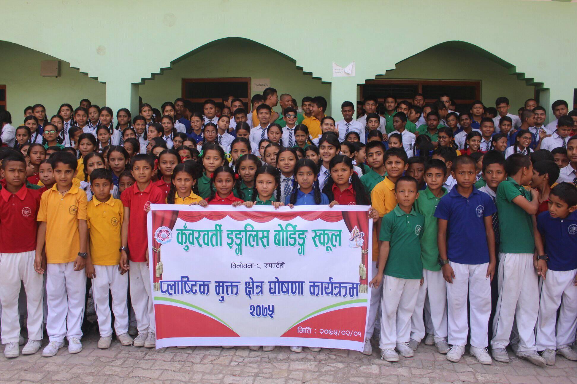 तिलोत्तमा, जेठ १ । रुपन्देहीको तिलोत्तमा नगरपालिका वडा नं. ८ प्रदीपनगर स्थित कुँवरवर्ती इंलिस बोर्डिङ स्कूललाई प्लाष्टिकमुक्त घोषणा गरिएको छ । मंगलबार जुनियर रेडक्रस सर्कलले आयोजना गरेको कार्यक्रममा विद्यालयका प्राचार्य दीपक खनालले स्कूललाई प्लाष्टिकमुक्त घोषणा गर्नुभएको हो । तिलोत्तमा नगरपालिकाले सुरु गरेको अभियानलाई साथ दिँदै विद्यालयलाई प्...