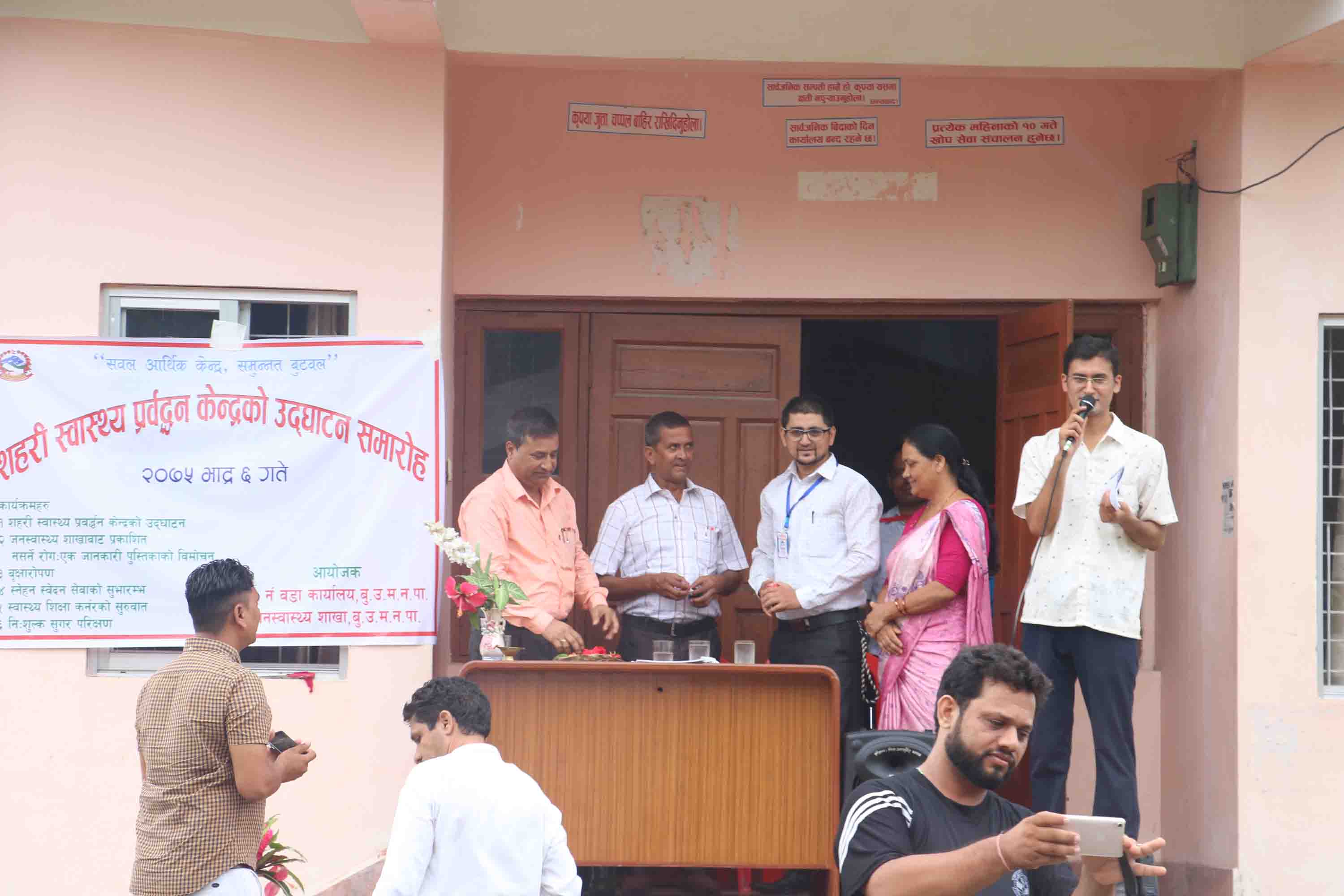 बुटवल उपमहानगरको एकीकृत स्वास्थ्य अभियान बुटवल, भदौ ६ । बुटवल उप–महानगरपालिका वडा नं. १२, नयाँगाउँ मिलनपार्क टोलमा सहरी स्वास्थ्य प्रर्वद्धन केन्द्र सुभारम्भ गरेको छ । पूर्वाधार विकास, प्रविधि तथा उपकरणको विस्तार र स्वास्थ्य सेवा विस्तारको कार्यक्रमलाई उपमहानगरले एकसाथ सुरु गरेको छ । एक तले भवनमा अर्को तला थपेर अत्याधुनिक प्रविधिको ल्याबसह...
