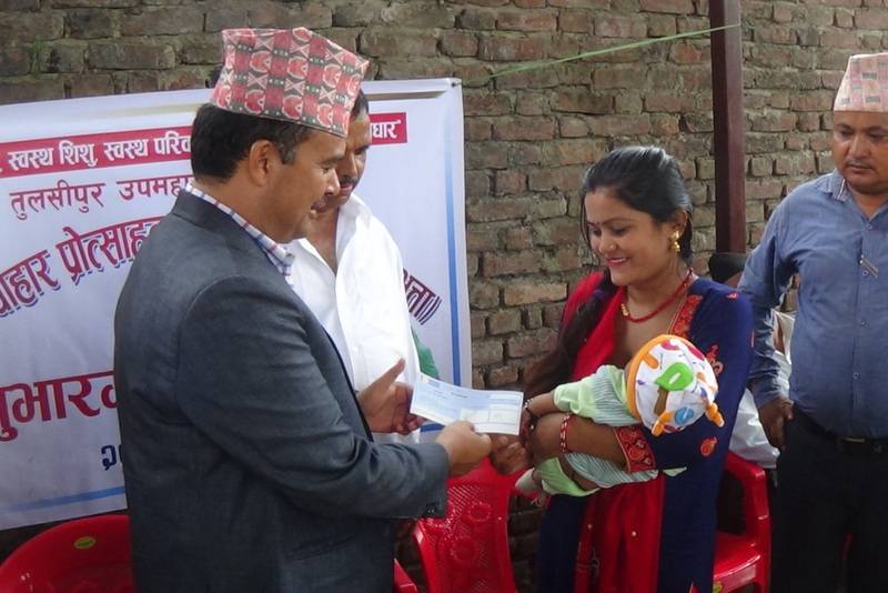तुलसीपुर, असोज २ । तुलसीपुर उपमहानगरपालिकाले नेपालमै पहिलोपटक सुत्केरीलाई भत्ता दिन सुरु गरेको छ। तुलसीपुर उपमहानगरपालिकाले मातृशिशु सुरक्षा तथा सुत्केरी स्याहार प्रोत्साहन पोषण भत्ता कार्यविधि २०७४ पारित गरेपछि रकम वितरण गरेको हो। पहिलो चरणमा पाँच हजारका दरले आइतबार २८ जना सुत्केरीले भत्ता पाएका छन्। दुई महिनाको बच्चा काखमा च्यापेर आएकी तुलसीपु...