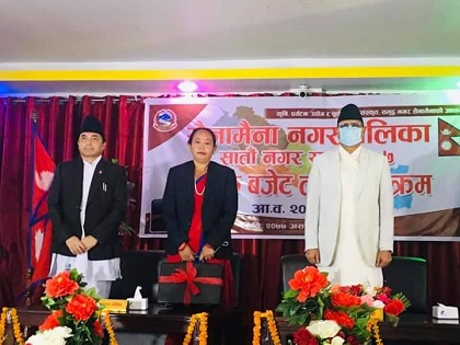 बुटवल ,असार १० । रुपन्देहीको सैनामैना नगरपालिकाले आगामी आर्थिक वर्ष २०७७÷०७८ का लागि ७० करोड ८३ लाख ७७ हजार ५ सय ४६ रुपैयाँको बजेट सार्वजनिक गरेको छ । नगर उपप्रमुख बिना रानाले बुधबार नगर सभामा उक्त बजेट सार्वजनिक गरेकी हुन् । उप प्रमुख रानाले प्रस्तसत गरेकी बजेट अनुसार कुल विनियोजित बजेटमध्ये चालू खर्चमा तलब, भत्ता तथा अन्य सुविधा, कार्य...