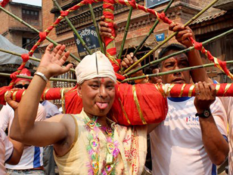 भक्तपुर साउन २७, विसं २०६३ देखि रोकिएर गत वर्षदेखि शुरु भएकोे थिमिको जिब्रो छेड्ने जात्रालाई निरन्तरता दिन यस वर्ष मध्यपुरथिमी–५, चोडेका ४० वर्षीय बालकराम श्रेष्ठले जिब्रो छेड्ने हुनुभएको छ । शनिबार चोडेमा चेंया पुन्हिया मेय प्वा ः खनेगु जात्रा व्यवस्थापन समितिले आयोजना गरेको पत्रकार सम्मेलनमा उहाँले लोप हुन लागेको जात्रा र परम्परालाई जीवित राख...